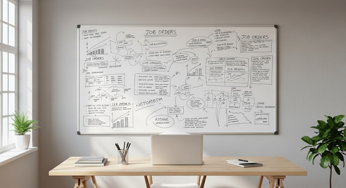 一時は受注が少なく、ホワイトボードが真っ白に近い状態だった。