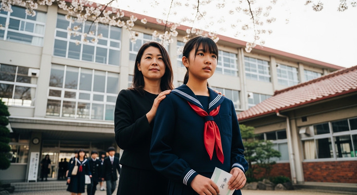 新しい制服に身を包み、少し緊張した様子の娘。                    その姿を見て、成長したなぁと感じる。