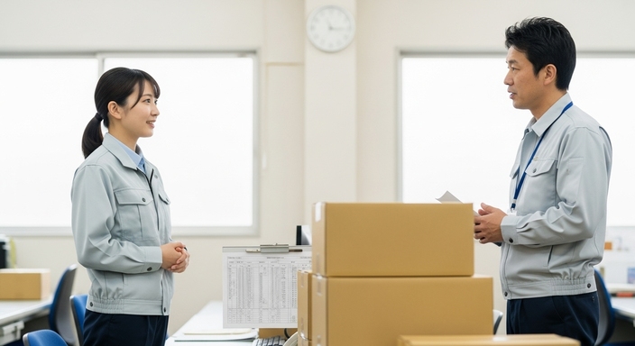 ダンボールの在庫が少なくなっていることに気づいた社員。上司に「発注しますか?」と確認をしました。すると上司は、「今回の出荷分は足りる?」と確認し、「次回の注文が入ったときに発注を考えよう」との判断。発注時期に間が空いていることも気にかけての言葉だった。確かに、最低ロット30枚などで注文すると、経費もかかるし、保管場所にも困ります。その場しのぎではなく、全体を見た上での判断に、社員は感銘を受けたのでした。